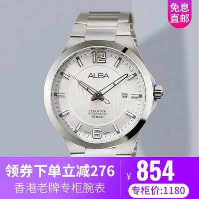精工手表男alba雅柏日本机芯白盘经典潮流男士腕表钛合金夜光表盘 虎窝淘